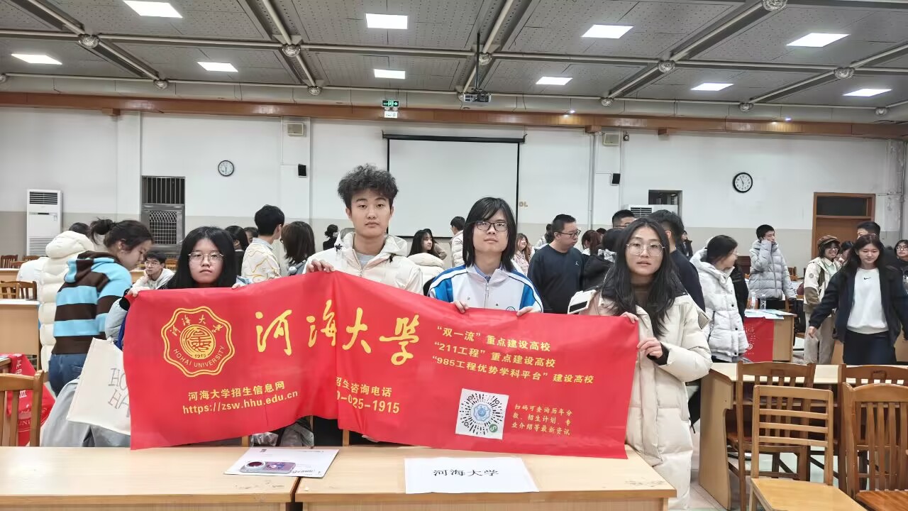 在学校体育馆举办的全国大学节活动中,来自全国各地的高校咨询台一字排开。澄澜载毅队成员身披毛巾哥 宣传绶带,通过宣传手册、校园文创和精彩视频,向驻足咨询的学子全面介绍学校历史沿革、学科优势与校园文化。面对 “水利工程专业特色”“录取政策”“大学生活适应” 等疑问,队员们结合自身经历耐心解答,现场互动氛围热烈,让双十学子直观感受河海 “艰苦朴素,实事求是,严格要求,勇于探索” 的校训精神。